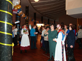 В фойе первого этажа театра «Глобус» установили сцену, украшенную фирменным рекламным плакатом, где улыбающийся симпатичный парень фотографирует мир из-за окна «Новолит». Как будто, сошедший с плаката, актер Сергей Мурашкин приветствовал собравшихся. Задрапированное легкой голубой тканью пространство напоминает небо. Легкости и движения добавляли белые бумажные птицы, кружащие над головами. Фойе и лестничные пролеты были украшены связками воздушных шаров – синие, белые, золотые. Зимний сад театра «Глобус» дополнял ощущение легкости и естественности в атмосферу мероприятия.