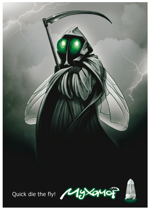Второе место в конкурсе наружной рекламы заняла работа «Не влетай, убьет», в печатной рекламе – «Смерть мухам». Обе последние сделаны для дальневосточного дистрибутора приборов «Мухомор».