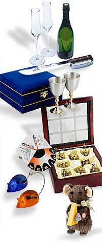 На листе календаря — декабрь, а значит Новый 2008 год не за горами! Предновогодняя подарочная лихорадка распространяется быстрее всякой простуды. У Компании КЬЮТИ, как у хорошего доктора, на этот счёт есть своё лекарство – ОГРОМНЫЙ СКЛАД подарков и бизнес-сувениров.Вот только некоторые из новогодних предложений: сверкающие бокалы и набор с хрустальным графином в виде часов; гусарский набор: бокалы и сабля, чтобы лихо сбивать горлышко бутылки с шампанским; набор «крестики-нолики», где роль игровых фишек выполняют ёлочки и подарки; шары и ёлки с подсветкой; магниты с падающим снегом; ведро для шампанского; ёлочные игрушки «12 стульев», и конечно, символ года – мышка – мышка-музыкальная игрушка, мышка-подставка под визитки.
