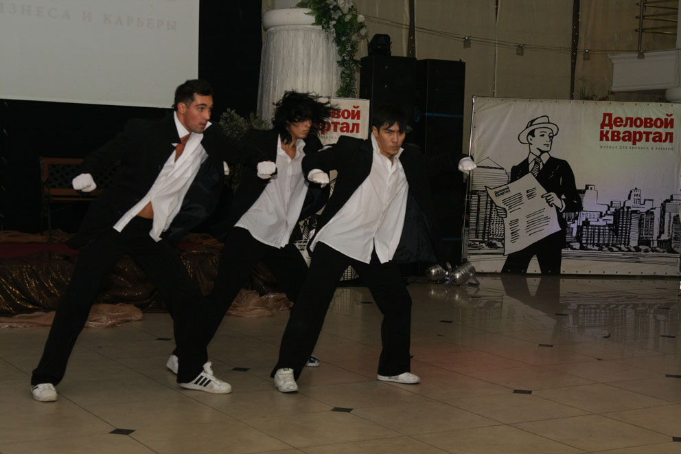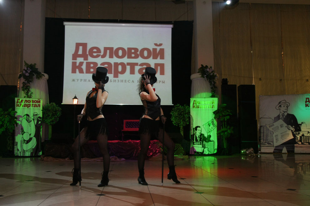 Кстати, довольно свежо и необычно была решена сценарная идея мероприятия. Программа под названием «Огни большого города». Все кругом напоминало атмосферу 30-х годов, атмосферу больших городов — с яркими огнями, великолепной музыкой, экстравагантными нарядами и зажигательными ритмами джаза. Ощущалось и предновогоднее настроение. Участники проекта «Визитница» не скрывали удовлетворения от происходящего в «Белом зале» и пожелали коллективу «Делового квартала» успешного развития в Новом, 2009 году.
