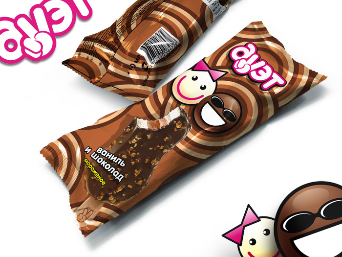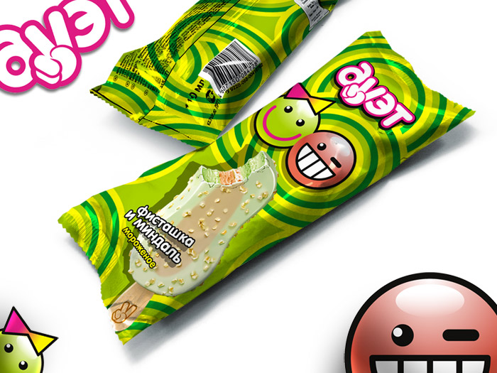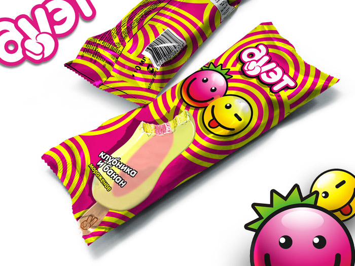 Радуга, веселье, сплошные смайлики и вечная радость жизни, праздник живота и пир духа. Упаковка для нового мороженого Хладокомбината №3 никогда не останется в тени.