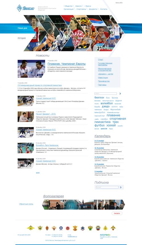 Всероссийское физкультурно-спортивное общество «Динамо» запустило новый корпоративный сайт – . Проект был разработан и реализован известной дизайн-студией Notamedia. На смену старому пришел новый сайт, особо подчеркивающий образ «Динамо», как современной и масштабной российской спортивной организации.