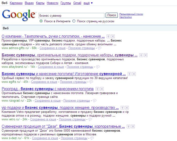 В настоящий момент www.altaybrand.ru находится в ТОР-10 Яндекса и в ТОP-3 Google по высокочастотным запросам «подарочный набор» и «бизнес сувенир».