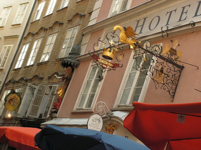 Города Инсбрук и Зальцбург известны своей замечательной архитектурой. Прекрасные старинные здания, соборы, музеи, театры и дворцы на фоне горных вершин – удивительное сочетание природы и архитектуры. Вдоволь налюбовавшись живописными достопримечательностями, мы не могли не обратить внимания и на особенности местной наружной рекламы.