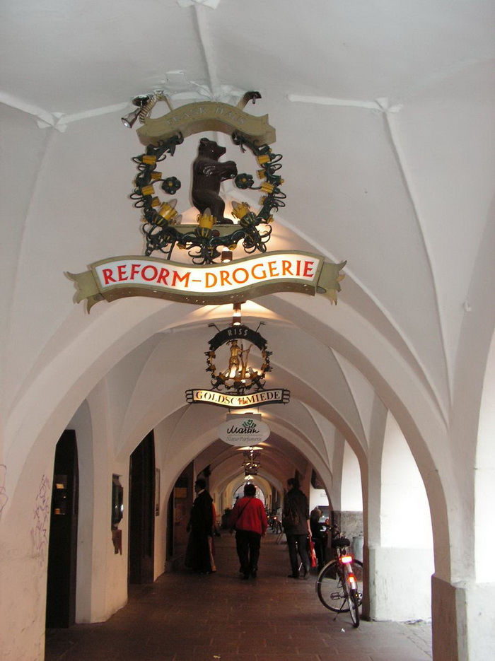 — Заметно, что в этих австрийских городах преобладает, за редким исключением, малобюджетная наружная реклама: как правило, внешняя подсветка вывесок или вообще отсутствие подсветки, простые технологии. Однако при этом все объекты очень тщательно проработаны, заметна профессиональная искусная работа. Характерная тенденция – преобладание дизайна над технологиями. Многие вывески создавались настоящими художниками (из представленного фотоотчета это, в первую очередь, панели-кронштейны). Также очень интересна вывеска ROSITTA: объемные буквы из металла, раскроенные с помощью лазера(лазерная резка), сделаны таким образом, чтобы создать имитацию сквозного выреза. На самом деле, при сильном приближении, заметно, что это – пленка или краска, подобранные в цвет подложки. Такой ход позволил существенно сэкономить на производстве, без урона для внешнего вида. Видна глубокая дизайнерская проработка вывески.