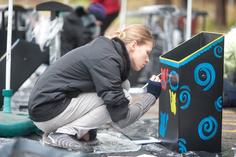 Роспись металлических мусорных урн выполнялась масляными красками, которые устойчивы к влаге и морозу. В творческом процессе участвовали студенты архитектурных и художественных отделений учебных заведений Новосибирска, активисты общественных организаций и обычные горожане, гулявшие в парке. Стилистика оформленных «домиков для мусора» поражает своим разнообразием – от психоделики и граффити до карикатур и наивного искусства.