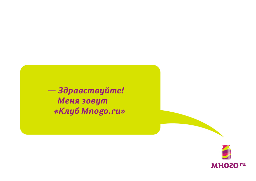 Главная задача, которая была поставлена при разработке новой концепции и фирменного стиля — выразить ожидания целевой аудитории. Член клуба Много.ру — игрок, для которого процесс покупки — не просто обмен денег на предметы, а развлечения, квест, объединяющие накопление, игру, движение.
