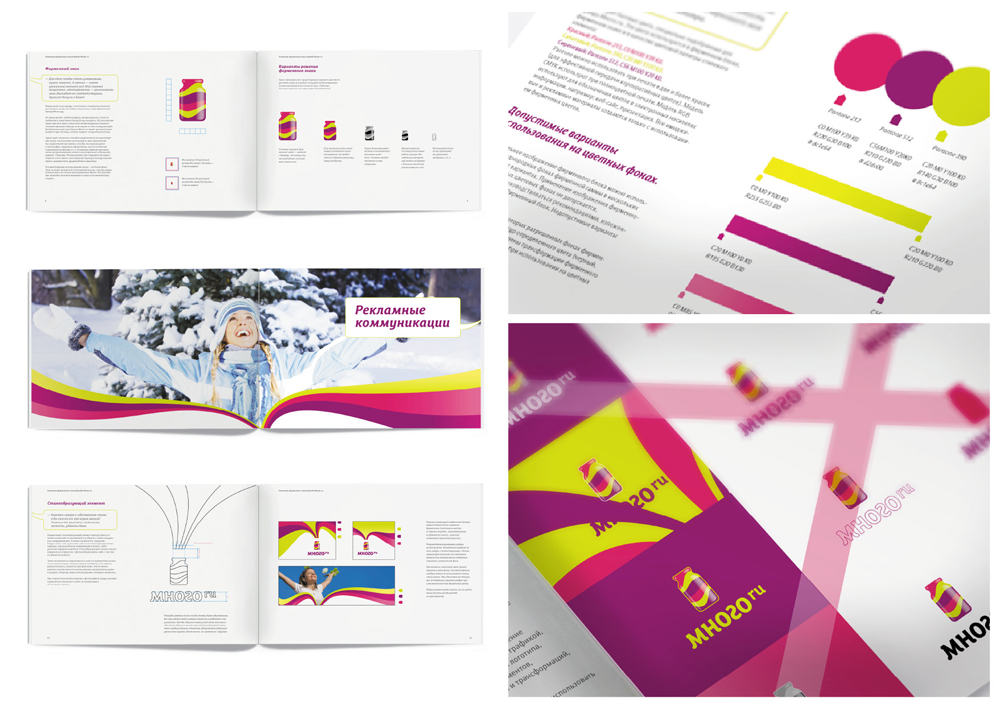 Агенством был проделан комплекс работ — бренд-аудит, разработка позиционирования бренда Mnogo.ru, констант фирменного стиля, включая логотип и визуальные атрибуты бренда Mnogo.ru, брендбука с гайдами по следующим разделам: деловая документация, рекламные материалы, web-сайт Много.ру.