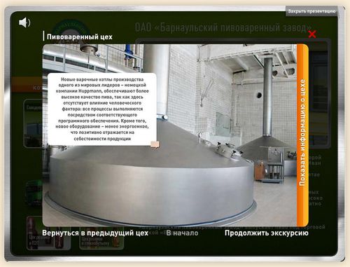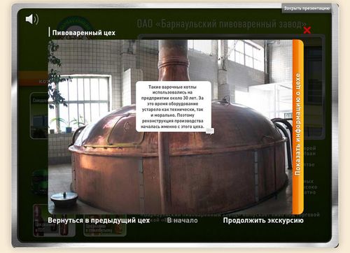«Наличие подобного интерактивного элемента выгодно отличает корпоративный сайт ОАО «БПЗ» от веб-ресурсов коллег по пивоваренному рынку, многие из которых для ознакомления гостей с предприятием ограничиваются фотогаллереями, — считает руководитель интернет-агентства «Кинетика», Алексей Самойлов, — Наиболее продвинутые пивзаводы размещают на своих сайтах видео-ролики или дают возможность наблюдать за происходящим в цехах при помощи онлайн-трансляций с веб-камер. Однако, надежды на добровольный просмотр посетителем сайта рекламного ролика не всегда оправданы, а видео-трансляции в режиме реального времени сложно назвать захватывающим зрелищем. Поэтому мы уверены, что формат «виртуальные туры + голосовые подсказки экскурсовода» — самый верный из всех вышеперечисленных способов на несколько минут овладеть драгоценным вниманием целевой аудитории».