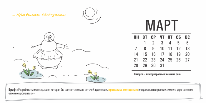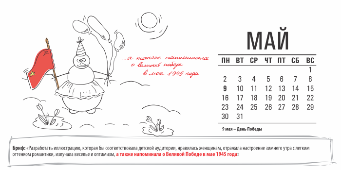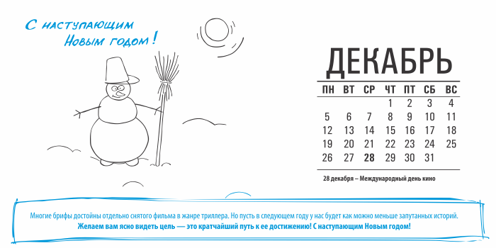 К Новому году мы разработали веселый корпоративный календарь, в котором поделились мыслями о том, что ясно видеть цель — это кратчайший путь к её достижению.