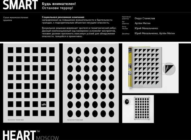 Первые места получили рекламные кампании по продвижению курсов первой помощи и по привлечению внимания общественности к отсутствию детских площадок в Омске. В печатной рекламе победила кампания «Будь внимателен! Останови террор!», а в нестандартных рекламных носителях — паспорта из акции «Потерянные жизни» и покосившийся билборд «Увы». В категории Короткометражный фильм победил ролик «Города». В Аудиорекламе равным не было ролику «Футбольный репортаж» ереванского агентства «Радио ВАН».