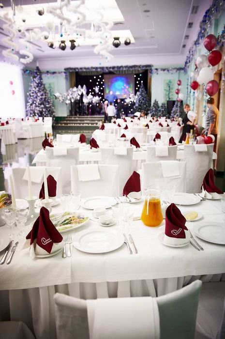 В задачи агентства входило: выбор площадки для проведения мероприятия, разработка концепции и сценария, подбор артистов, визуальное оформление площадки, изготовление сувенирной продукции. Для проведения мероприятия требовалось найти площадку, которая могла бы вместить за круглым столом более 100 человек и при этом обладала бы помещением для проведения развлекательной программы. Поэтому выбор был сделан в пользу кемеровского центра отдыха “Притомье”. Конференц-зал центра отдыха, обладающий достаточным техническим обеспечением и вместительностью, принял официальную часть мероприятия – круглый стол, а банкетный зал, оформленный в новогоднем стиле, идеально подошел для проведения второй части мероприятия вечерней шоу-программы.