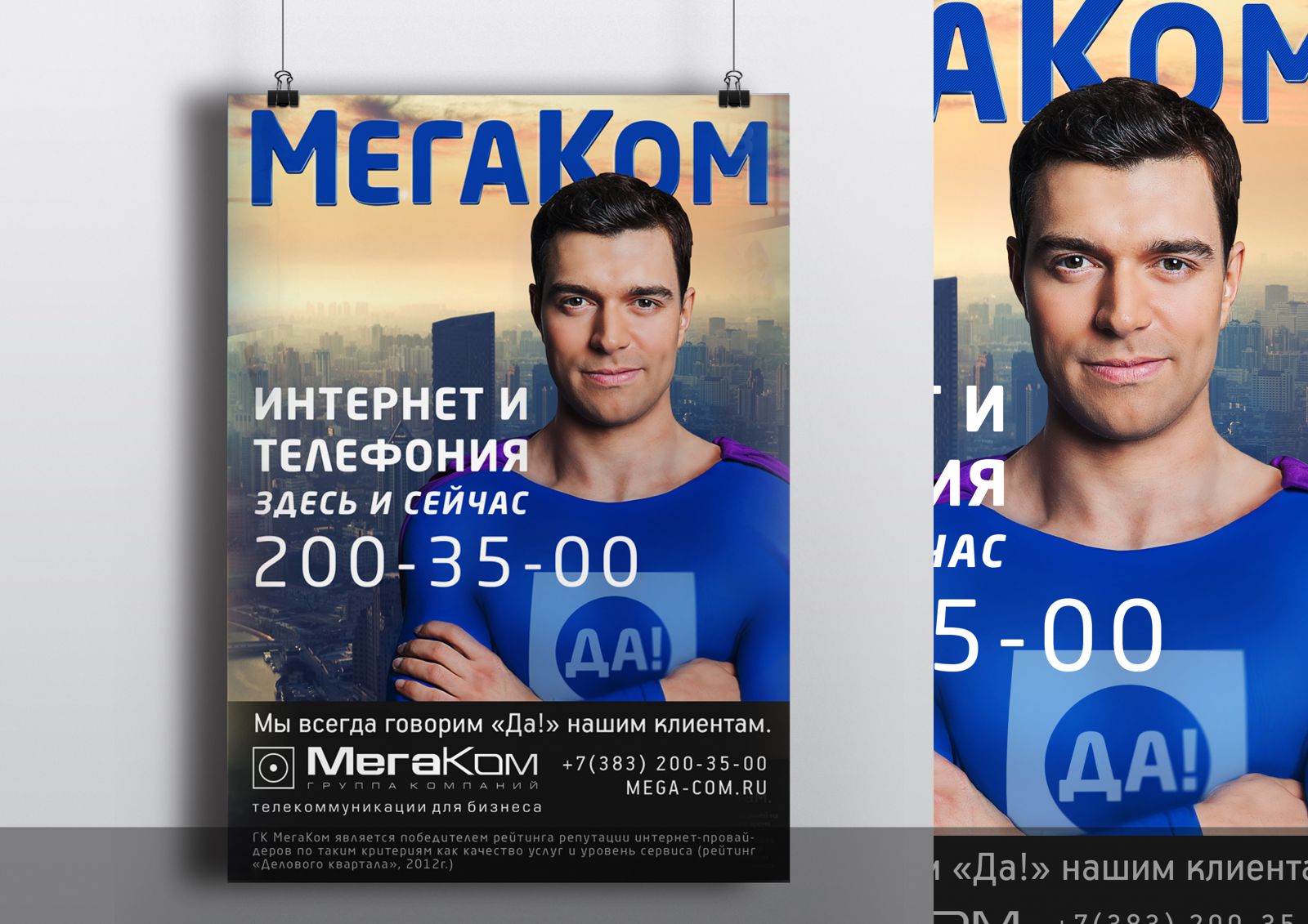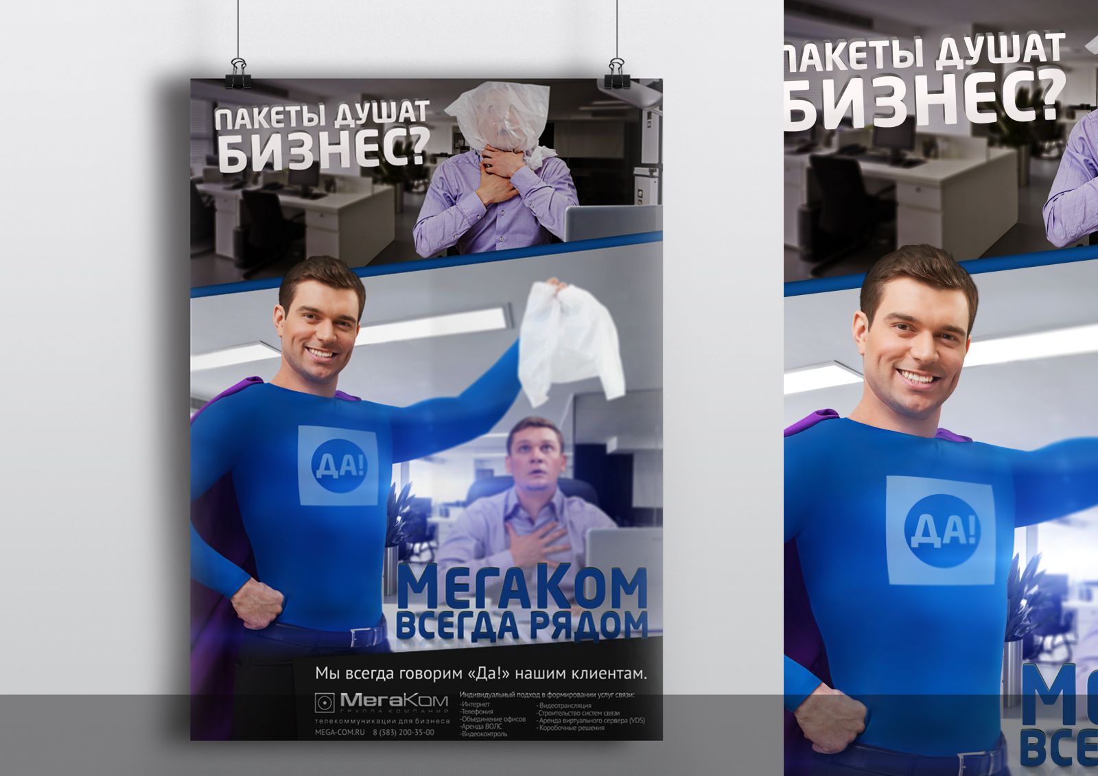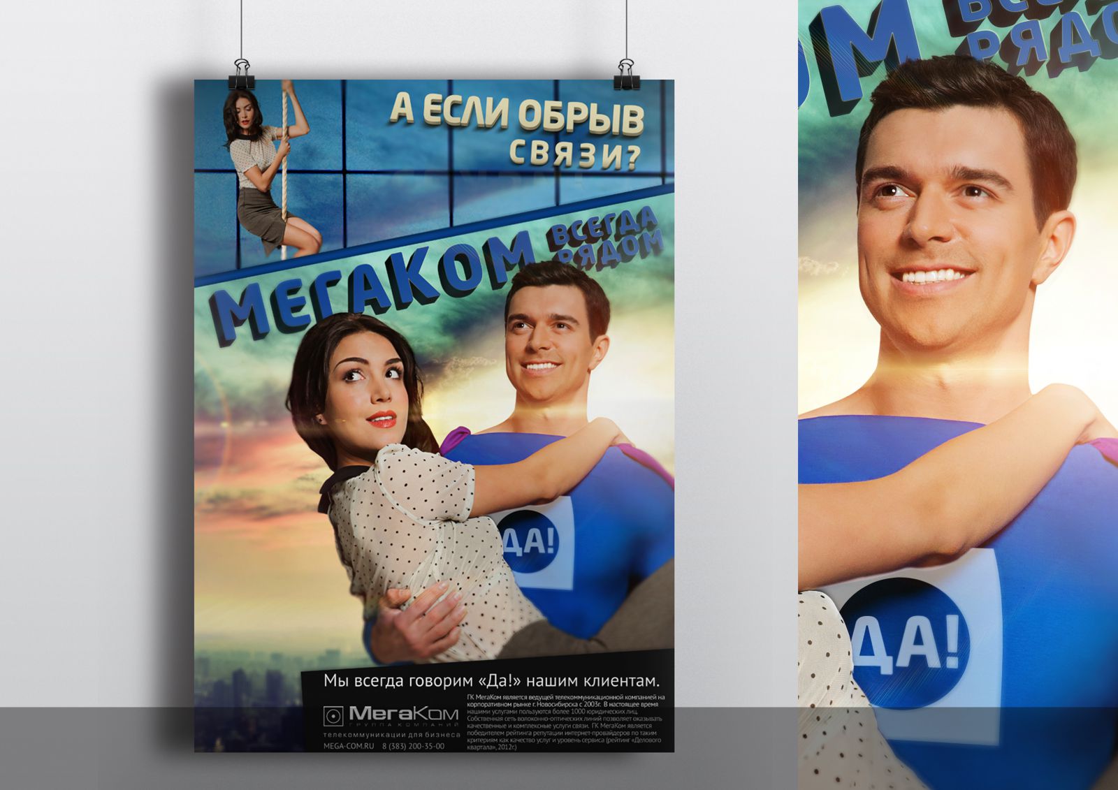 Креативное агентство «Круче!» из Новосибирска разработало идею для оператора связи МегаКом. В центре идеи стоит герой «ДА-мен», который спасает «белых воротничков» от обрывов связи, медленной скорости Интернета, объединяет подразделения бизнеса, находящиеся в разных концах города в единую инфраструктуру.