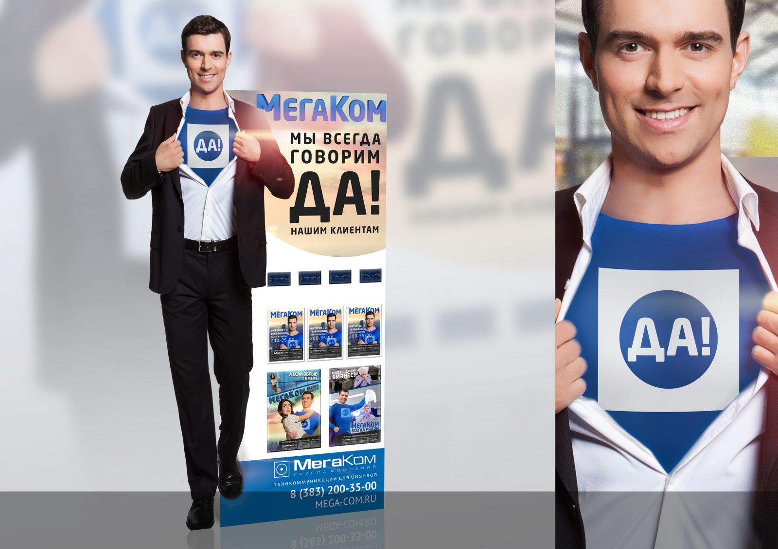 Креативное агентство «Круче!» из Новосибирска разработало идею для оператора связи МегаКом. В центре идеи стоит герой «ДА-мен», который спасает «белых воротничков» от обрывов связи, медленной скорости Интернета, объединяет подразделения бизнеса, находящиеся в разных концах города в единую инфраструктуру.