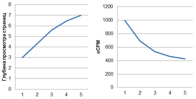 На примере портала бесплатных объявлений рассмотрим эффективность отслеживания показателей для трафиковых задач. В ходе ежедневного отслеживания показателей глубины просмотра страниц, показателя отказов и длительности посещения на сайте были выявлены наиболее эффективные социально-демографические группы пользователей. Каждый день теста проводился анализ показателей и группы пользователей со средней глубиной просмотра страниц менее 4 и показателем отказов выше 40% исключались. Для клиента был важен именно качественный трафик, так как просмотр пользователем каждой страницы являлся одним показом баннера, размещенным на сайте. Стоимость 1000 показов баннера снижалась пропорционально росту глубины просмотра страниц. В результате за 5 рабочих дней eCPM (эффективная стоимость за 1000 показов) была снижена на 57%.