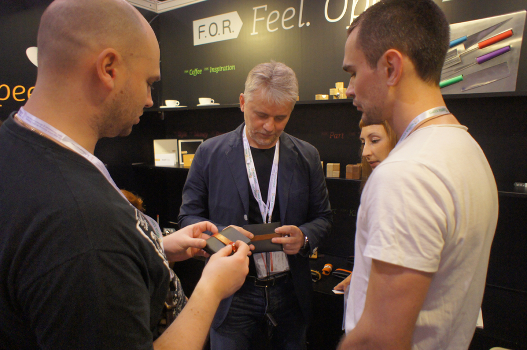 «Боюсь, я не эксперт в области B2B коммуникаций, но это приятные вещи, которые приятно держать в руках, — отозвалась Ксения Лукичева, редактор сайта AdMe. — Вот эта вот штучка, которая напоминает кубик Рубика, прыгающая флешка Quick, замечательные ножи в раме… — Меня очень волновал кошелек, в котором нет швов, как минимум он необычный. Я очень надеюсь, что с F.O.R. все получится».