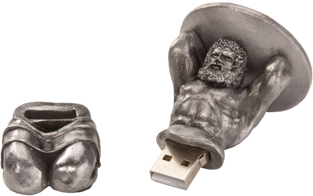 Эта миниатюрная скульптура из олова — подарок для сильных мира сего, для тех, на чьих надежных плечах держится бизнес. Или знак того, что компания-даритель столь же надежна, как Атлант, символизирующий выносливость, терпение, могучую физическую силу и незыблемость. Емкость 8 Гб или 16 Гб.