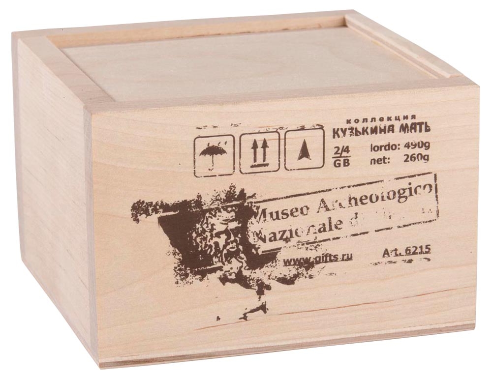 Подарочная упаковка воспроизводит в миниатюре ящик для перевозки художественных ценностей.