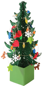 В наборе: сборная елка, подставка, гирлянда, елочные игрушки. Место для логотипа — на основании.