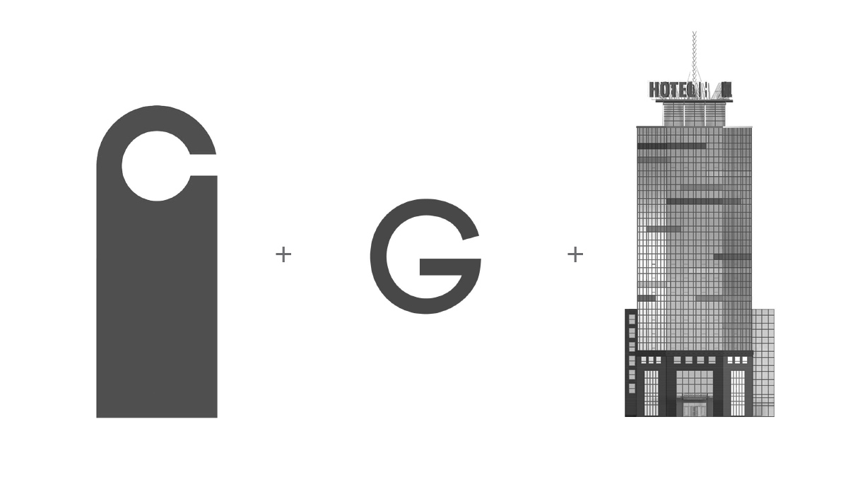 Логотип Gorskiy city hotel представляет собой комбинацию знака и написания названия отеля. Знак изображен в виде классической таблички, которая вешается на дверь номера – дорхенгера (Doorhanger), в сочетании с первой буквой в названии отеля. Также вытянутая пропорция знака напоминает высотное здание.