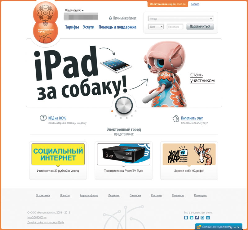 3-е место — сайт компании «Новотелеком» (www.2090000.ru). Разработчик сайта — «Космос-Веб»