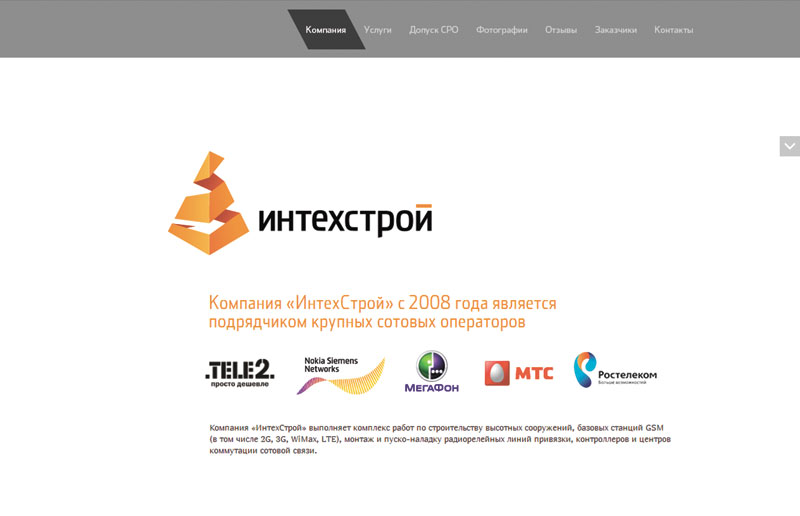 4-е место — сайт компании «Интехстрой» ). Разработчик сайта — digital-агентство WOW