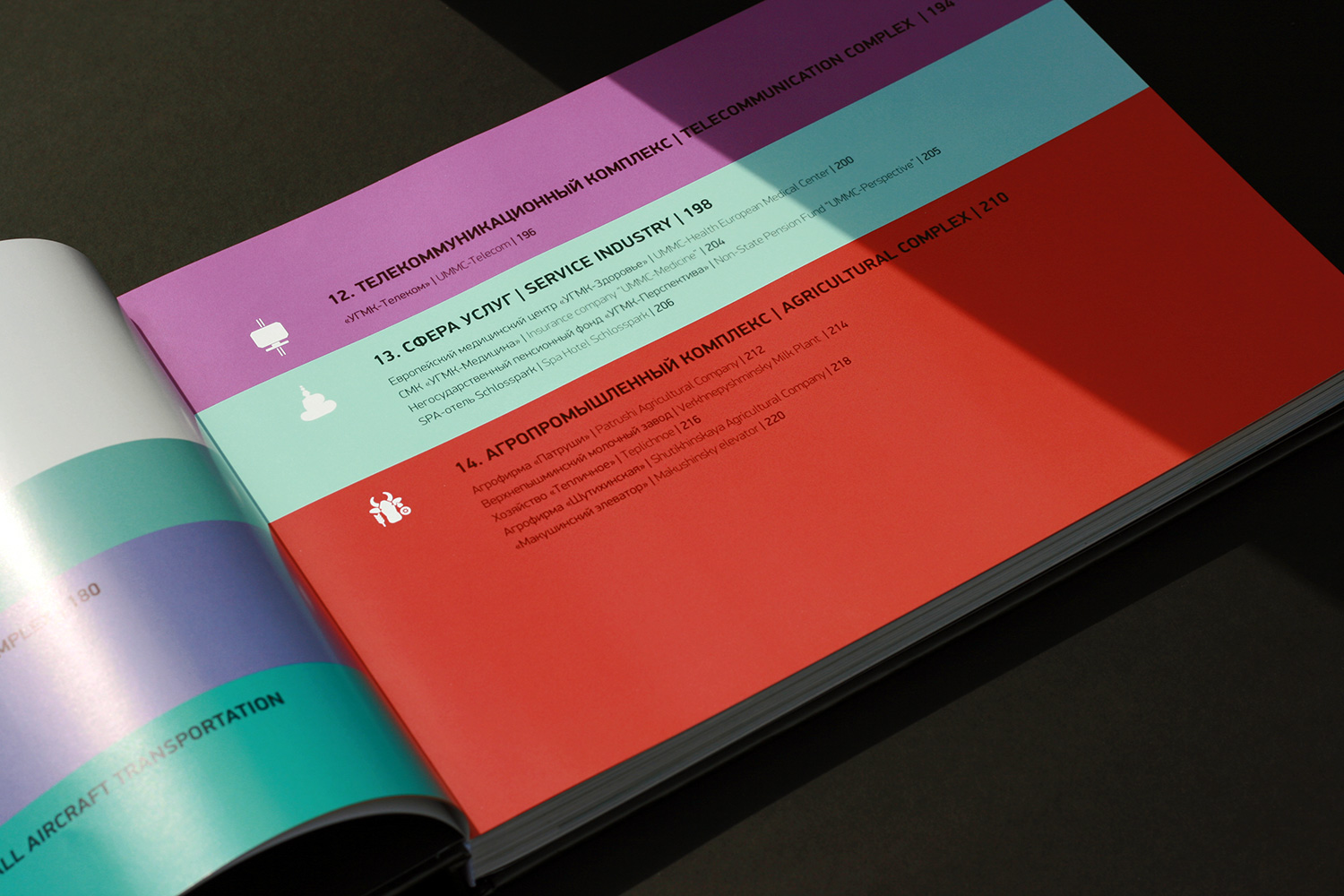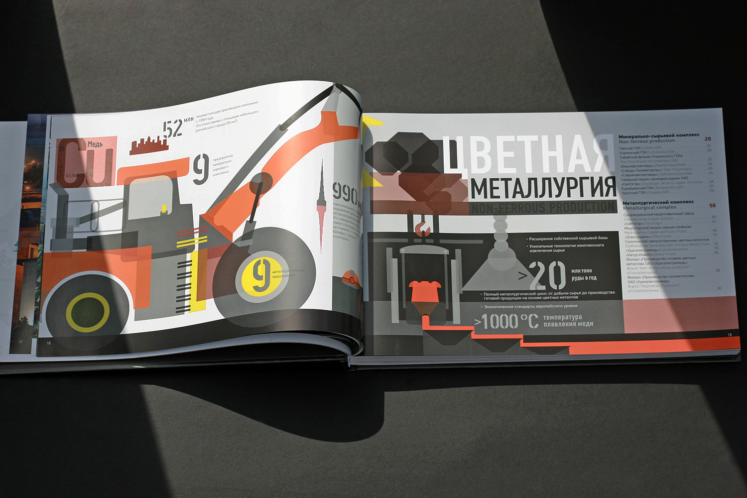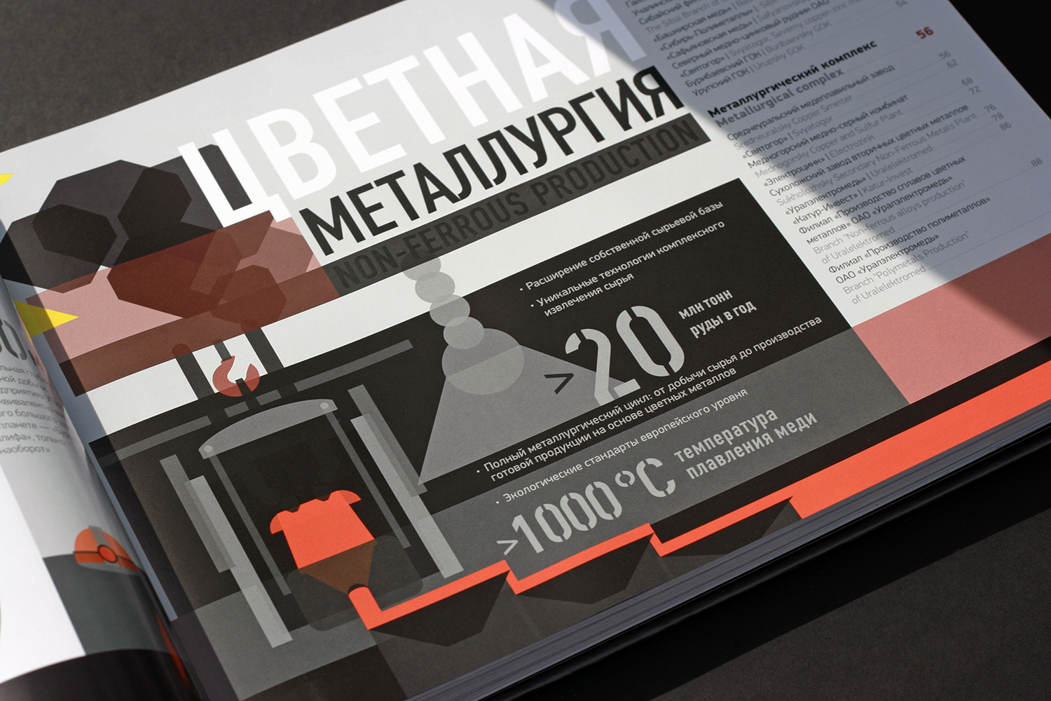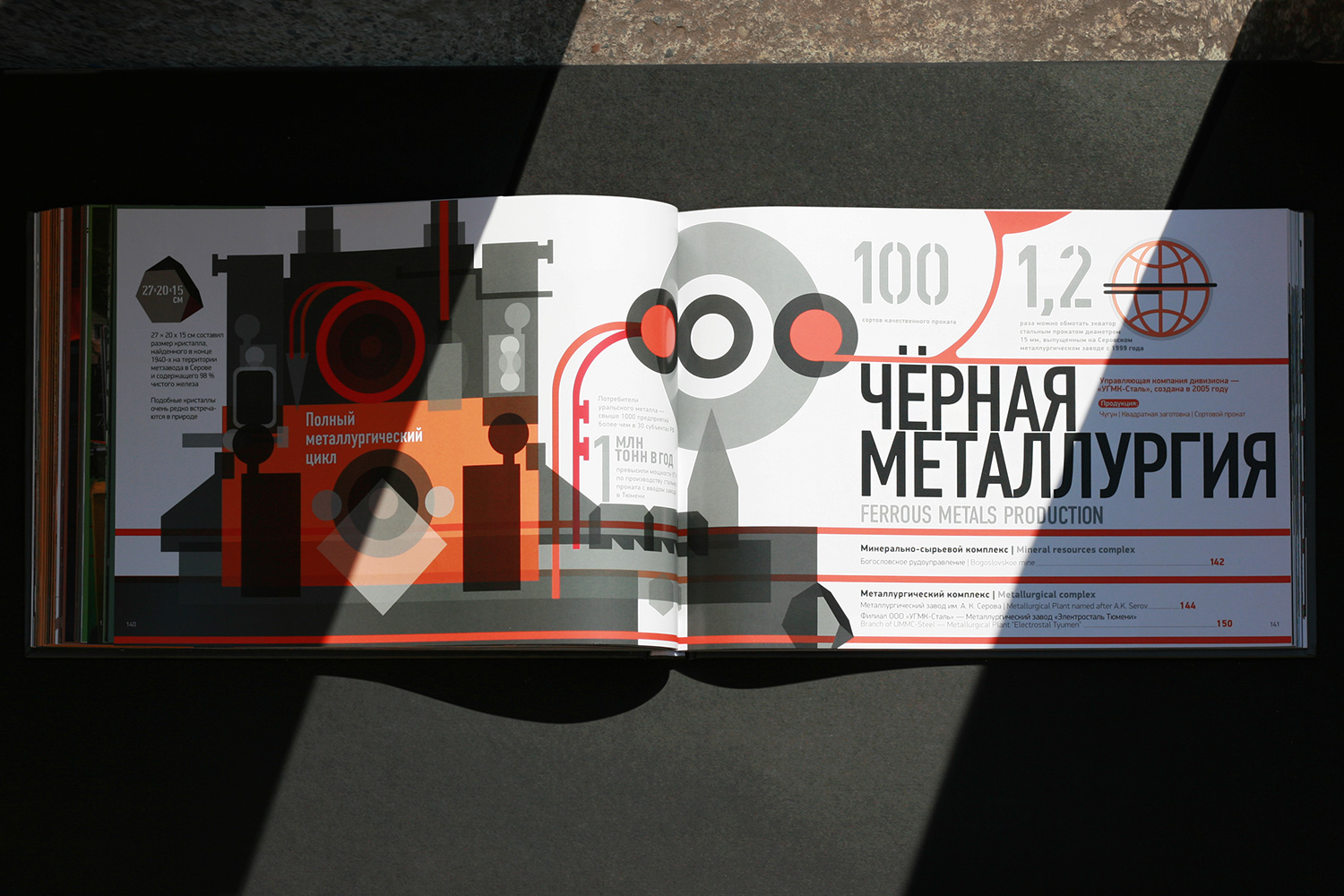 Дизайн и вёрстка книги. Книга в полном объеме представляет все направления деятельности крупнейшего российского холдинга: от цветной и чёрной металлургии до авиастроения с географией в 17 регионах России и зарубежья.