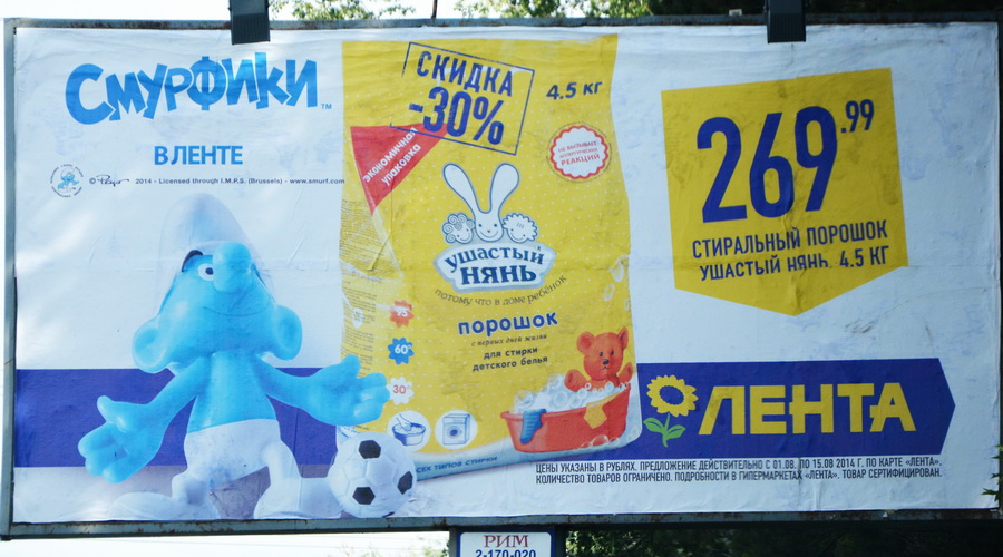 Няни в пакетах, смурфики в лентах. А почему скидки в процентах?