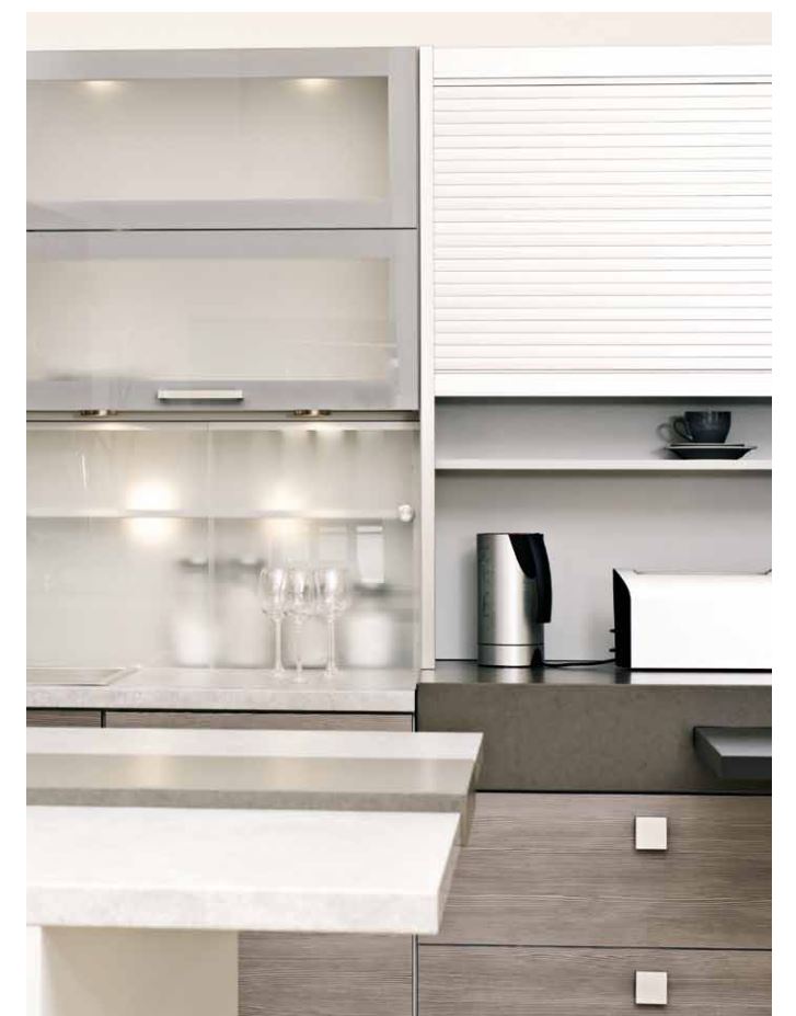 У мебельных жалюзи широкий спектр применения – их используют в качестве фасадов деревянных и стальных шкафов, при оформлении ниш, разнообразных систем хранения. Прочный, износостойкий материал применим для эксплуатации в условиях жилых помещений, офисных кабинетов, кухонь. При открывании мебельные жалюзи не занимают дополнительное место, в отличие от распашных дверок обычных шкафов. Специальные системы гарантируют плавный ход полотна. Как результат – легкое открывание и закрывание без лишних усилий.