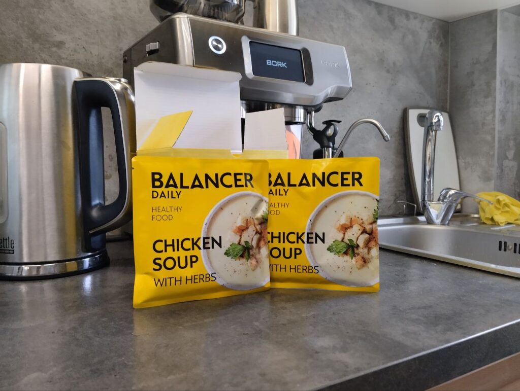 Я взял Balancer с нейтральным вкусом, курица плюс зелень. Было интересно сравнить его с Energy Diet от NL international который я применял несколько раз, также для контроля веса. Как я питаюсь? Плотный завтрак, затем небольшой обед, а вот ужин может быть очень плотным. Мой вес колеблется от минимума в 74,5 до 76 кг. Встал вопрос, какой из приемов пищи гасить? Утром было бы тяжело остаться без полноценного питания, какая-то масса должна болтаться в желуде. Было необходимо выбрать заменить обед или ужин. Либо поступить хитрее и уменьшить и обед и ужин и принимать балансер примерно в 17:00 за час до окончания работы.